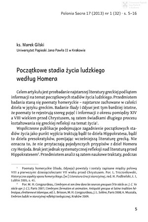 Słowa kluczowe: Początkowe stadia życia ludzkiego , Homer , Embrion
