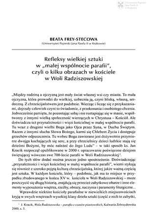 Refleksy wielkiej sztuki w "małej wspólnocie parafii", czyli o kilku obrazach w kościele w Woli RadziszowskiejRefleksy wielkiej sztuki w "małej wspólnocie parafii", czyli o kilku obrazach w kościele w Woli Radziszowskiej