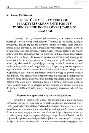 Niektóre aspekty teologii i praktyki sakramentu pokuty w odniesieniu do pierwszej tablicy DekaloguNiektóre aspekty teologii i praktyki sakramentu pokuty w odniesieniu do pierwszej tablicy Dekalogu