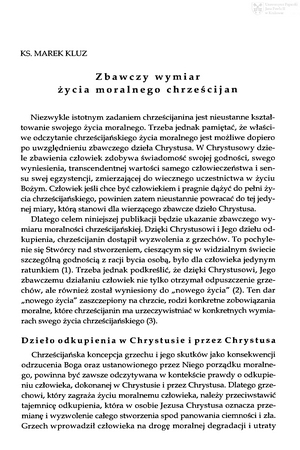 Zbawczy wymiar życia moralnego chrześcijanZbawczy wymiar życia moralnego chrześcijan