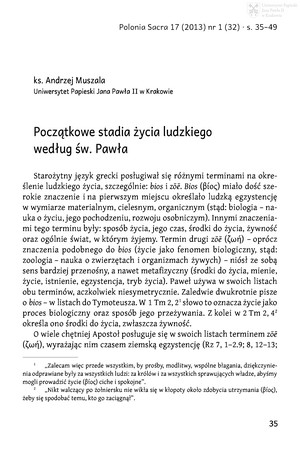 Słowa kluczowe: Początkowe stadia życia ludzkiego , Embrion , Płód , Paweł Apostoł (św. ; ca 8-ca 67)