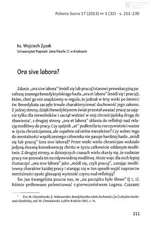 Słowa kluczowe: Modlitwa , Praca , Duchowość laikatu