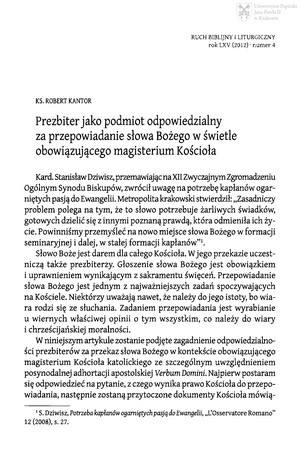 Prezbiter jako podmiot odpowiedzialny za przepowiadanie słowa Bożego w świetle obowiązującego magisterium KościołaPrezbiter jako podmiot odpowiedzialny za przepowiadanie słowa Bożego w świetle obowiązującego magisterium Kościoła