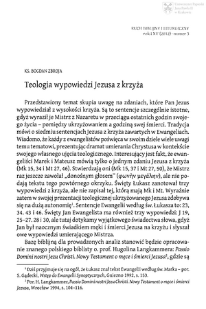 Teologia wypowiedzi Jezusa z krzyżaTeologia wypowiedzi Jezusa z krzyża