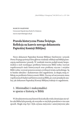 Prawda historyczna Pisma Świętego. Refleksja na kanwie nowego dokumentu Papieskiej Komisji BiblijnejPrawda historyczna Pisma Świętego. Refleksja na kanwie nowego dokumentu Papieskiej Komisji Biblijnej