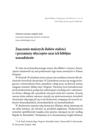 Znaczenie mniszych ślubów stałości i przemiany obyczajów oraz ich biblijne uzasadnienieZnaczenie mniszych ślubów stałości i przemiany obyczajów oraz ich biblijne uzasadnienie