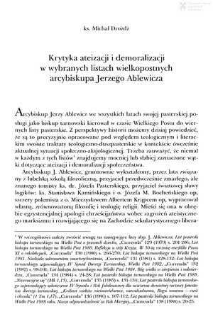 Krytyka ateizacji i demoralizacji w wybranych listach wielkopostnych arcybiskupa Jerzego AblewiczaKrytyka ateizacji i demoralizacji w wybranych listach wielkopostnych arcybiskupa Jerzego Ablewicza