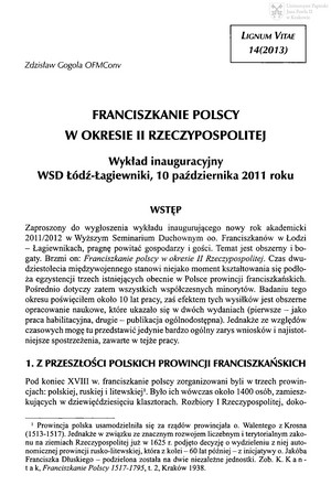 Słowa kluczowe: Ordo Fratrum Minorum , Wykład inauguracyjny , Bracia Mniejsi Konwentualni , Franciszkanie