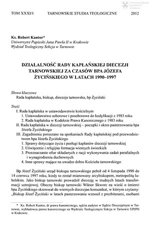 Działalność Rady kapłańskiej diecezji tarnowskiej za czasów bpa Józefa Życińskiego w latach 1990-1997Działalność Rady kapłańskiej diecezji tarnowskiej za czasów bpa Józefa Życińskiego w latach 1990-1997