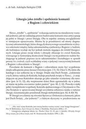 Liturgia jako źródło i spełnienie komunii z Bogiem i człowiekiemLiturgia jako źródło i spełnienie komunii z Bogiem i człowiekiem