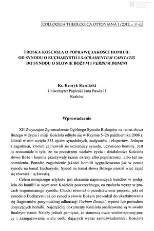 Troska Kościoła o poprawę jakości homilii : od synodu o Eucharystii i "Sacramentum caritatis" do synodu o Słowie Bożym "Verbum Domini"Troska Kościoła o poprawę jakości homilii : od synodu o Eucharystii i "Sacramentum caritatis" do synodu o Słowie Bożym "Verbum Domini"