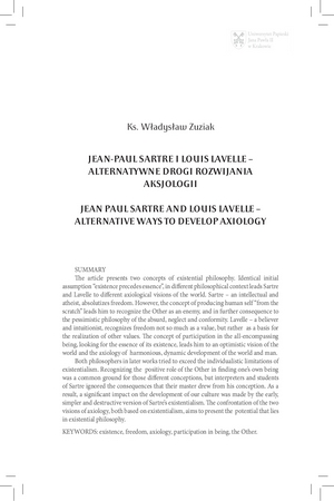 Jean-Paul Sartre i Louis Lavelle : alternatywne drogi rozwijania aksjologiiJean-Paul Sartre i Louis Lavelle : alternatywne drogi rozwijania aksjologii