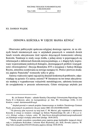 Odnowa Kościoła w ujęciu Hansa KüngaOdnowa Kościoła w ujęciu Hansa Künga
