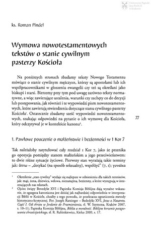 Wymowa nowotestamentowych tekstów o stanie cywilnym pasterzy KościołaWymowa nowotestamentowych tekstów o stanie cywilnym pasterzy Kościoła