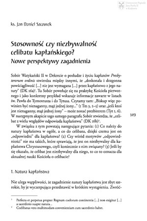 Stosowność czy niezbywalność celibatu kapłańskiego? : nowe perspektywy zagadnieniaStosowność czy niezbywalność celibatu kapłańskiego? : nowe perspektywy zagadnienia