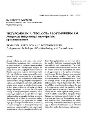 Przypomnienia : teologia i postmodernizm. Prolegomena dialogu teologii chrześcijańskiej z postmodernizmemPrzypomnienia : teologia i postmodernizm. Prolegomena dialogu teologii chrześcijańskiej z postmodernizmem