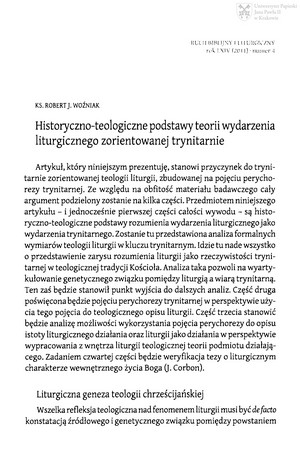 Historyczno-teologiczne podstawy teorii wydarzenia liturgicznego zorientowanej trynitarnie