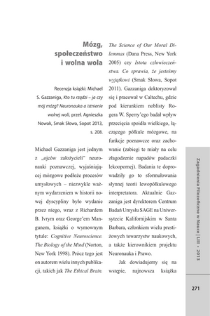 Mózg, społeczeństwo i wolna wola : [recenzja]Mózg, społeczeństwo i wolna wola : [recenzja]