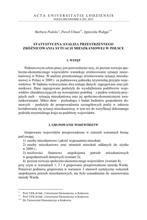 Statystyczna analiza przestrzennego zróżnicowania sytuacji mieszkaniowej w PolsceStatystyczna analiza przestrzennego zróżnicowania sytuacji mieszkaniowej w Polsce