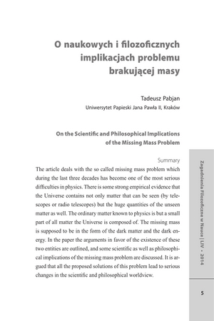 O naukowych i filozoficznych implikacjach problemu brakującej masyO naukowych i filozoficznych implikacjach problemu brakującej masy