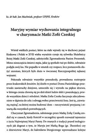 Maryjny wymiar wychowania integralnego w charyzmacie Matki Zofii CzeskiejMaryjny wymiar wychowania integralnego w charyzmacie Matki Zofii Czeskiej