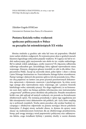 Postawa Kościoła wobec wydarzeń społeczno-politycznych w Polsce na początku lat osiemdziesiątych XX wiekuPostawa Kościoła wobec wydarzeń społeczno-politycznych w Polsce na początku lat osiemdziesiątych XX wieku