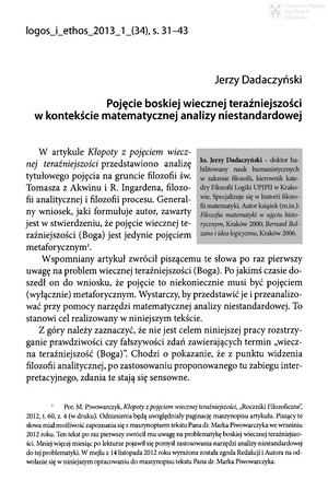 Pojęcie boskiej wiecznej teraźniejszości w kontekście matematycznej analizy niestandardowejPojęcie boskiej wiecznej teraźniejszości w kontekście matematycznej analizy niestandardowej