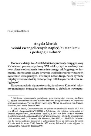 Angela Merici : wśród ewangelicznych napięć, humanizmu i pedagogiki miłościAngela Merici : wśród ewangelicznych napięć, humanizmu i pedagogiki miłości