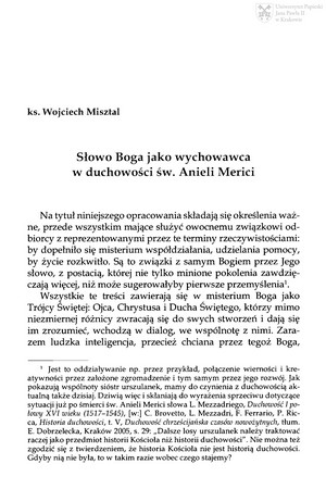 Słowo Boga jako wychowawca w duchowości św. Anieli MericiSłowo Boga jako wychowawca w duchowości św. Anieli Merici