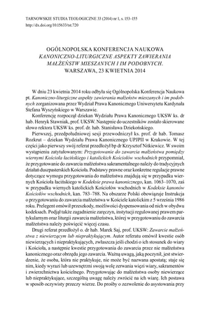 Ogólnopolska Konferencja Naukowa Kanoniczno‑liturgiczne aspekty zawierania małżeństw mieszanych i im podobnych. Warszawa, 23 kwietnia 2014Ogólnopolska Konferencja Naukowa Kanoniczno‑liturgiczne aspekty zawierania małżeństw mieszanych i im podobnych. Warszawa, 23 kwietnia 2014