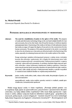 Słowa kluczowe: Mass media , Etyka mediów , Wartości , Sprawiedliwość