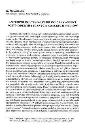 Antropologiczno-aksjologiczny aspekt postmodernistycznych koncepcji mediówAntropologiczno-aksjologiczny aspekt postmodernistycznych koncepcji mediów