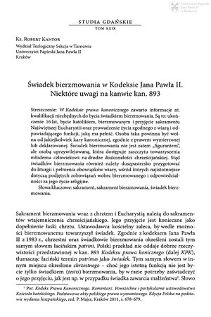Świadek bierzmowania w Kodeksie Jana Pawła II : niektóre uwagi na kanwie kan. 893Świadek bierzmowania w Kodeksie Jana Pawła II : niektóre uwagi na kanwie kan. 893