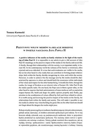 Pozytywny wpływ mediów na relacje rodzinne w świetle nauczania Jana Pawła IIPozytywny wpływ mediów na relacje rodzinne w świetle nauczania Jana Pawła II