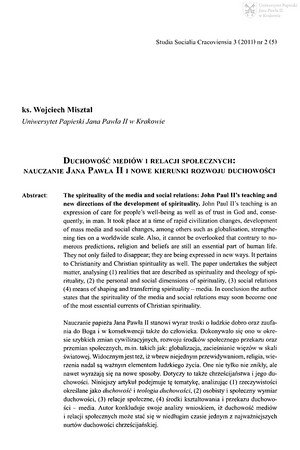 Duchowość mediów i relacji społecznych : nauczanie Jana Pawła II i nowe kierunki duchowościDuchowość mediów i relacji społecznych : nauczanie Jana Pawła II i nowe kierunki duchowości