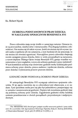 Ochrona podstawowych praw dziecka w nauczaniu społecznym Benedykta XVIOchrona podstawowych praw dziecka w nauczaniu społecznym Benedykta XVI