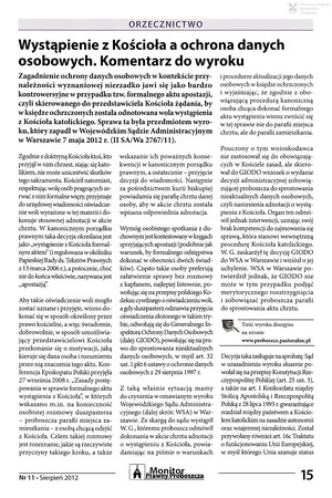 Wystąpienie z kościoła a ochrona danych osobowych : komentarz do wyrokuWystąpienie z kościoła a ochrona danych osobowych : komentarz do wyroku