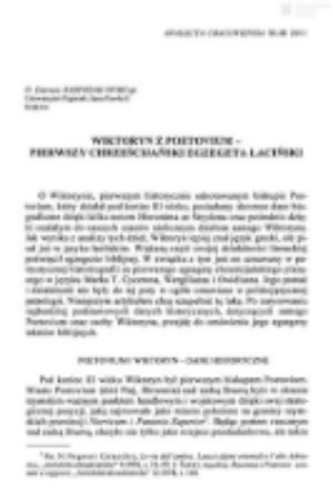 Wiktoryn z Poetovium - pierwszy chrześcijański egzegeta łacińskiWiktoryn z Poetovium - pierwszy chrześcijański egzegeta łaciński