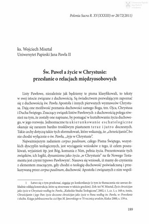 Św. Paweł a życie w Chrystusie : przesłanie o relacjach międzyosobowychŚw. Paweł a życie w Chrystusie : przesłanie o relacjach międzyosobowych