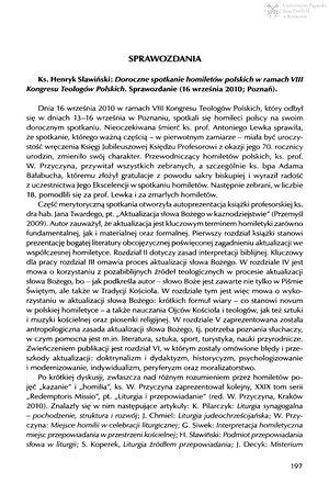 Doroczne spotkanie homiletów polskich w ramach VIII Kongresu Teologów Polskich (16 września 2010, Poznań) : sprawozdanieDoroczne spotkanie homiletów polskich w ramach VIII Kongresu Teologów Polskich (16 września 2010, Poznań) : sprawozdanie