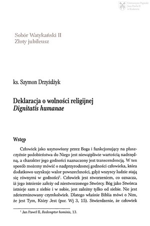 Deklaracja o wolności religijnej "Dignitatis humanae"Deklaracja o wolności religijnej "Dignitatis humanae"