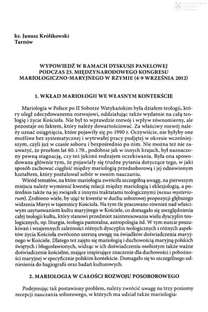 Wypowiedź w ramach dyskusji panelowej podczas 23. Międzynarodowego Kongresu Mariologiczno-Maryjnego w Rzymie (4-9 września 2012)Wypowiedź w ramach dyskusji panelowej podczas 23. Międzynarodowego Kongresu Mariologiczno-Maryjnego w Rzymie (4-9 września 2012)