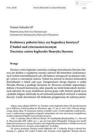 Krakowscy pobożni laicy czy begardzcy heretycy? : z badań nad czternastowiecznym Tractatus contra beghardos Henryka HarreraKrakowscy pobożni laicy czy begardzcy heretycy? : z badań nad czternastowiecznym Tractatus contra beghardos Henryka Harrera