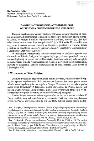 Założenia teologiczno-antropologiczne wychowania chrześcijańskiego w rodzinieZałożenia teologiczno-antropologiczne wychowania chrześcijańskiego w rodzinie