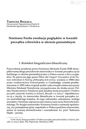 Normana Forda ewolucja poglądów w kwestii początku człowieka w okresie prenatalnymNormana Forda ewolucja poglądów w kwestii początku człowieka w okresie prenatalnym