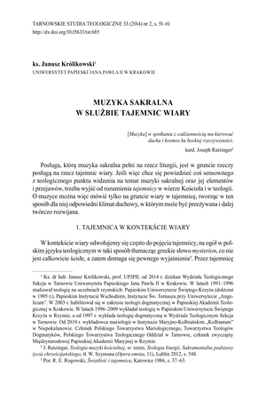 Słowa kluczowe: Muzyka sakralna , Wiara , Teologia , Tajemnica