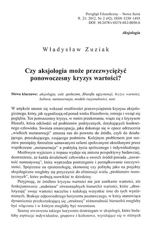 Czy aksjologia może przezwyciężyć ponowoczesny kryzys wartości?Czy aksjologia może przezwyciężyć ponowoczesny kryzys wartości?