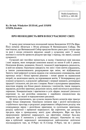 Pro neobhidnist' viri v posucasnomu svitiPro neobhidnist' viri v posucasnomu sviti