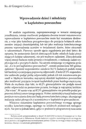 Wprowadzenie dzieci i młodzieży w kapłaństwo powszechneWprowadzenie dzieci i młodzieży w kapłaństwo powszechne