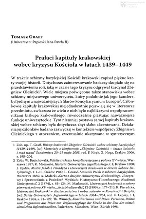 Prałaci kapituły krakowskiej wobec kryzysu Kościoła w latach 1439-1449Prałaci kapituły krakowskiej wobec kryzysu Kościoła w latach 1439-1449